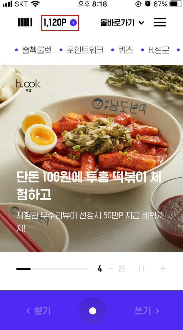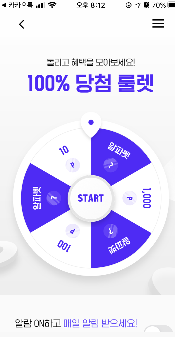 운이 좋으면 1,000P벌어갈 수 있으니 매일매일 도전해보세요