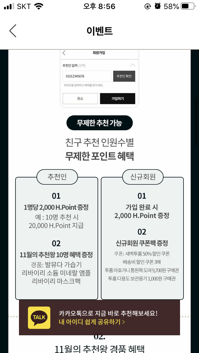 이렇게 추천인 코드로 가입한 신규회원에게도 포인트를 주고