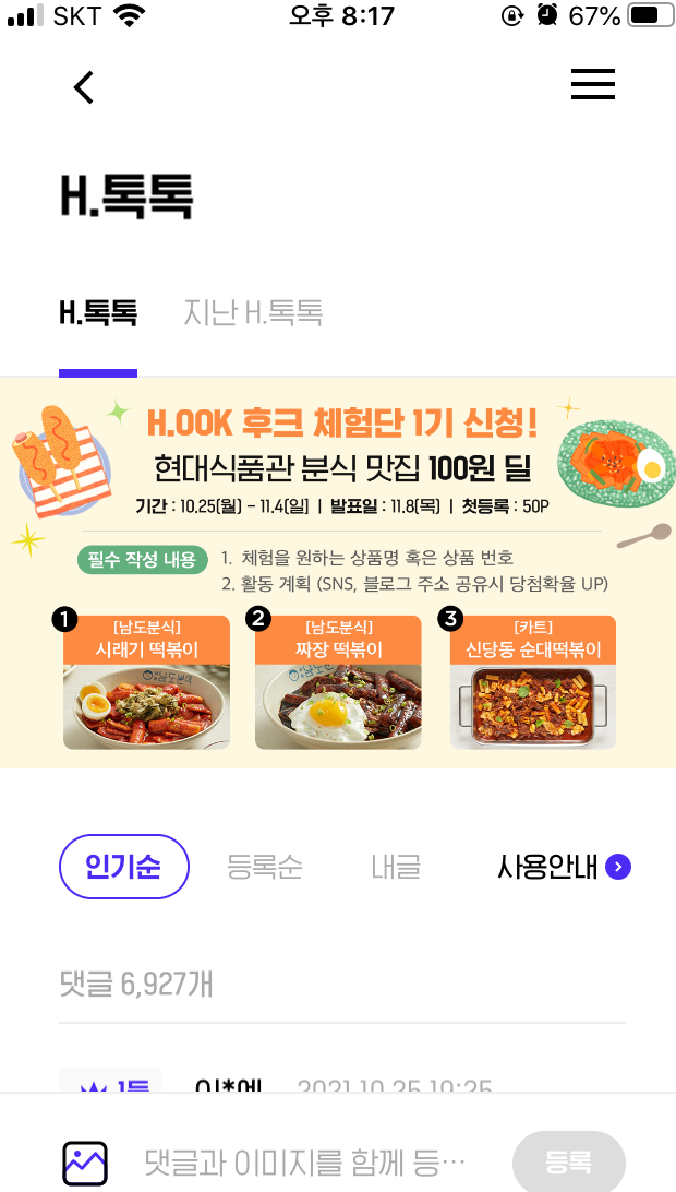 자 그리고 H톡톡이라고 체험단을 신청하는 이벤트도 진행중이네요.