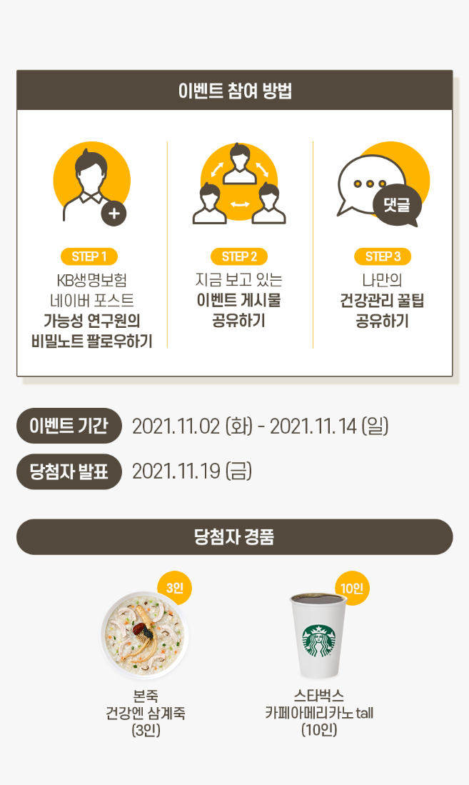 [팔로우 이벤트] 건강관리 꿀팁 공유하고 건강죽 기프티콘 받자