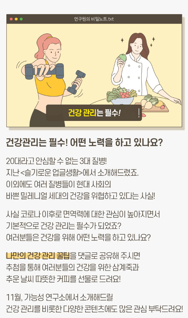 건강관리를 위한 이벤트를 소개하려고 합니다!